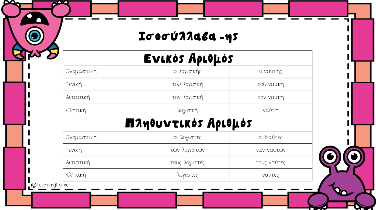 Ένα πολύτιμο εργαλείο για την κατανόηση και εξάσκηση των ουσιαστικών, ιδανικό για όλες τις τάξεις του Δημοτικού. Το μπρελόκ περιλαμβάνει καρτέλες με ουσιαστικά ταξινομημένα ανά γένος, πτώση και κατηγορία (π.χ. ισοσύλλαβα, ανισοσύλλαβα, αρσενικά, θηλυκά, ουδέτερα κ.ά.), βοηθώντας τους μαθητές να εμπεδώσουν με ευκολία τη γραμματική.