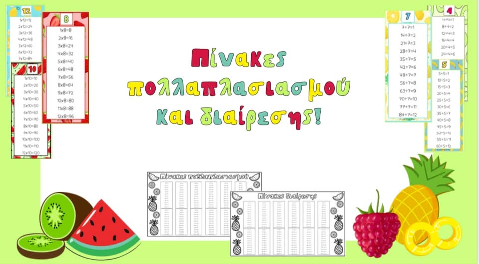 Πίνακες Πολλαπλασιασμού Και Διαίρεσης!