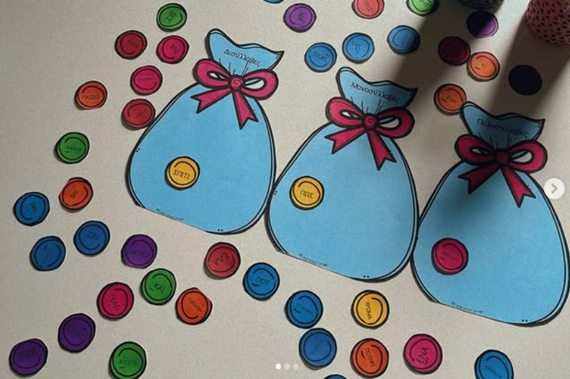 • Δραστηριότητες ταξινόμησης λέξεων ανάλογα με τον αριθμό συλλαβών