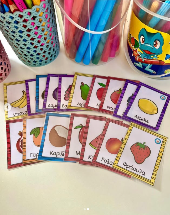 🍎 Μαθαίνω τα φρούτα στα ελληνικά μέσα από 23 κάρτες. 🍇